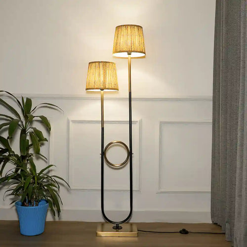 COLORADO Single Light Floor Lamp In Black & Brass Finish With Cotton Fabric Shade