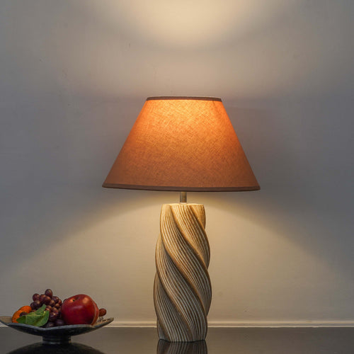 SIEMON Wood Single Light Floor Lamp With Beige Shade