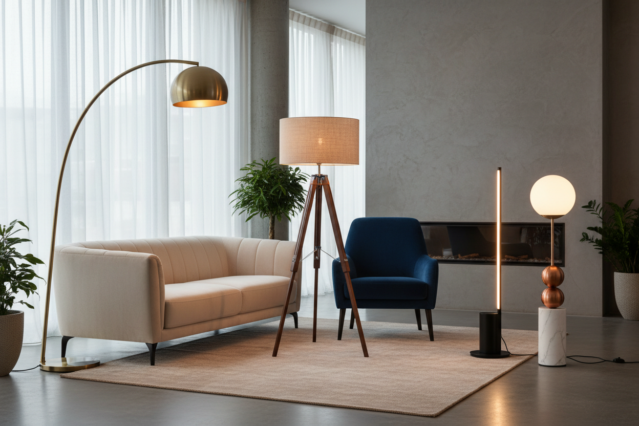 GLOUCESTER Metal Floor Lamp With White Cotton Shade